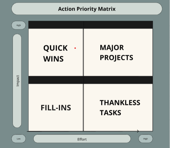 Prioritization is a game-changer. Use the Action Priority Matrix to rank features based on impact and effort: